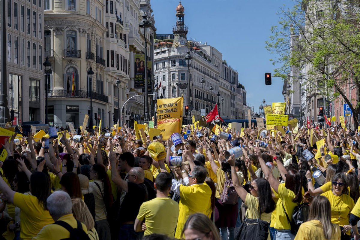 Decenas de personas durante una concentración de docentes de escuelas infantiles frente a la Consejería de Educación, Ciencia y Universidades, a 15 de abril de 2026, en Madrid (España). Desde el martes 7 de abril, las escuelas infantiles de la Comunidad d - Alberto Ortega - Europa Press