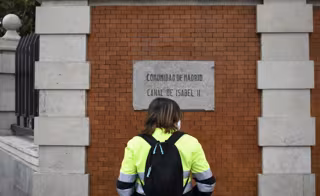 Archivo - Una persona pasa por una señal del Canal de Isabel II, en Madrid (España). - Óscar Cañas - Europa Press - Archivo