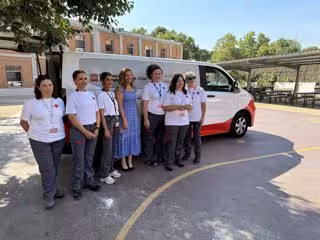 En el centro de la imagen, Ana Dávila posa junto a personal del servicio que gestiona Cruz Roja. - EUROPA PRESS