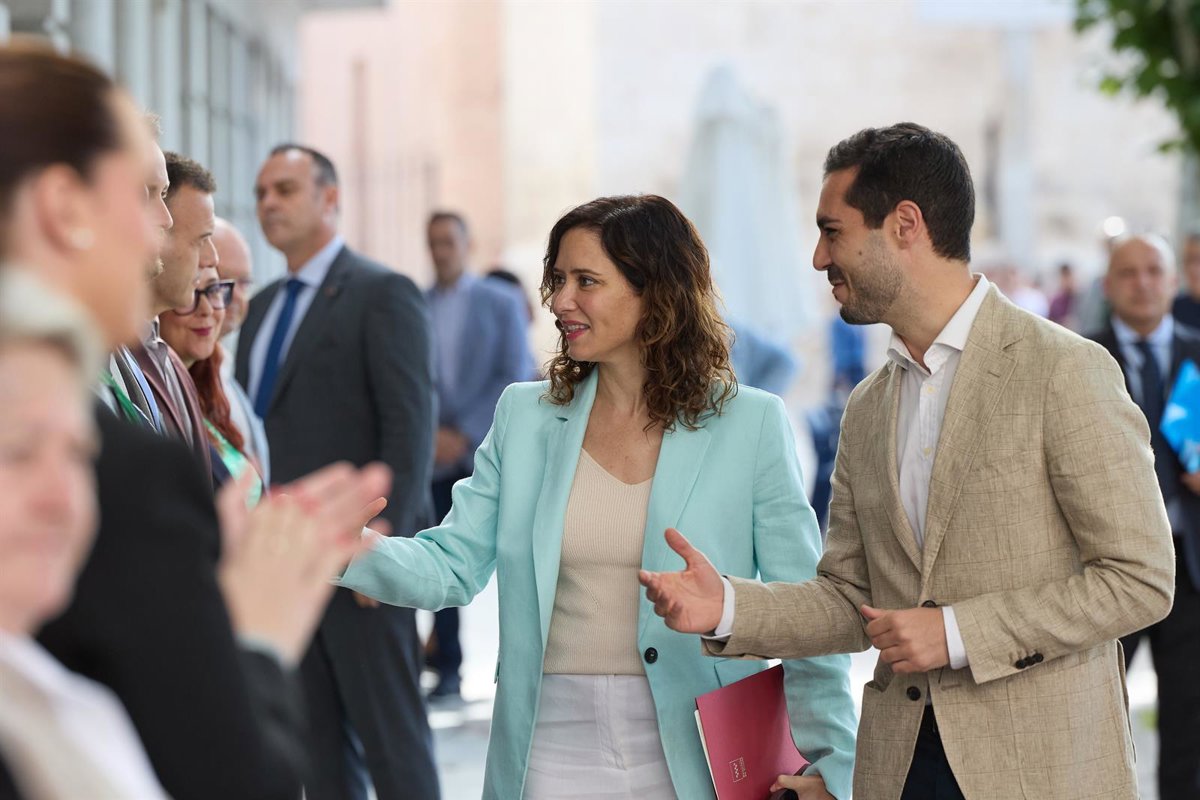 La presidenta de la Comunidad de Madrid, Isabel Díaz Ayuso, y el alcalde de Torrejón de Ardoz, Alejandro Navarro, a su llegada a la reunión del Consejo de Gobierno, en el Ayuntamiento de Torrejón de Ardoz, a 12 de junio de 2024, en Torrejón de Ardoz, Ma - Jesús Hellín - Europa Press