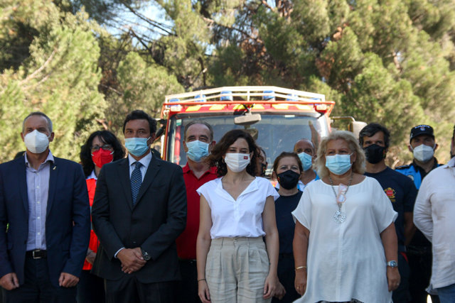 La presidenta ha reconocido, además, el trabajo y el despliegue para el fuego del pasado fin de semana en San Martín de Valdeiglesias, donde participaron efectivos del Cuerpo de Bomberos de la Comunidad, de las Brigadas Forestales, de Agentes Forestales, Protección Civil, el Equipo de Respuesta Logística Inmediata de Voluntarios de Protección Civil ante Emergencias (ERIVE), la Guardia Civil, Policías Locales, SUMMA 112 y Cruz Roja.