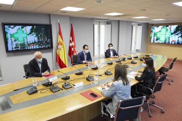 El encuentro, que ha comenzado a las 16.30 en la sede de Vicepresidencia y ha durado alrededor de hora y media, ha contado con la presencia de la secretaria de Estado de Sanidad, Silvia Calzón, de la Directora de la Agencia Española de Medicamentos, María José Lamas, del vicepresidente regional, Ignacio Aguado, y del viceconsejero de Humanización sanitaria, José María Antón.