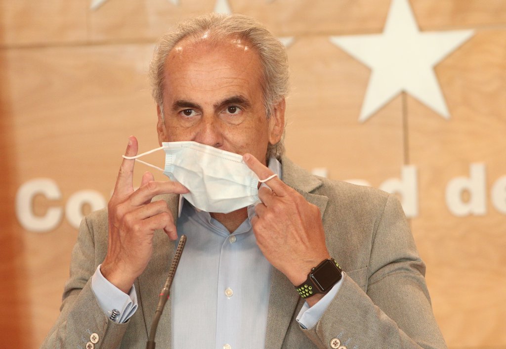 El consejero de Sanidad de la Comunidad de Madrid, Enrique Ruiz Escudero, se quita la mascarilla antes de dar a conocer la actualización de las medidas de protección. - Eduardo Parra - Europa Press