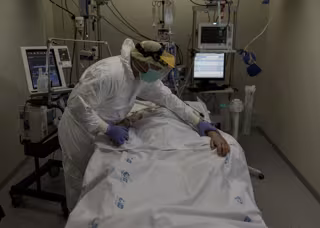 Personal sanitario totalmente protegido atiende a un paciente ingresado en la Unidad de Cuidados Intensivos del Hospital Infanta Sofía - Eduardo Parra - Europa Press - Archivo