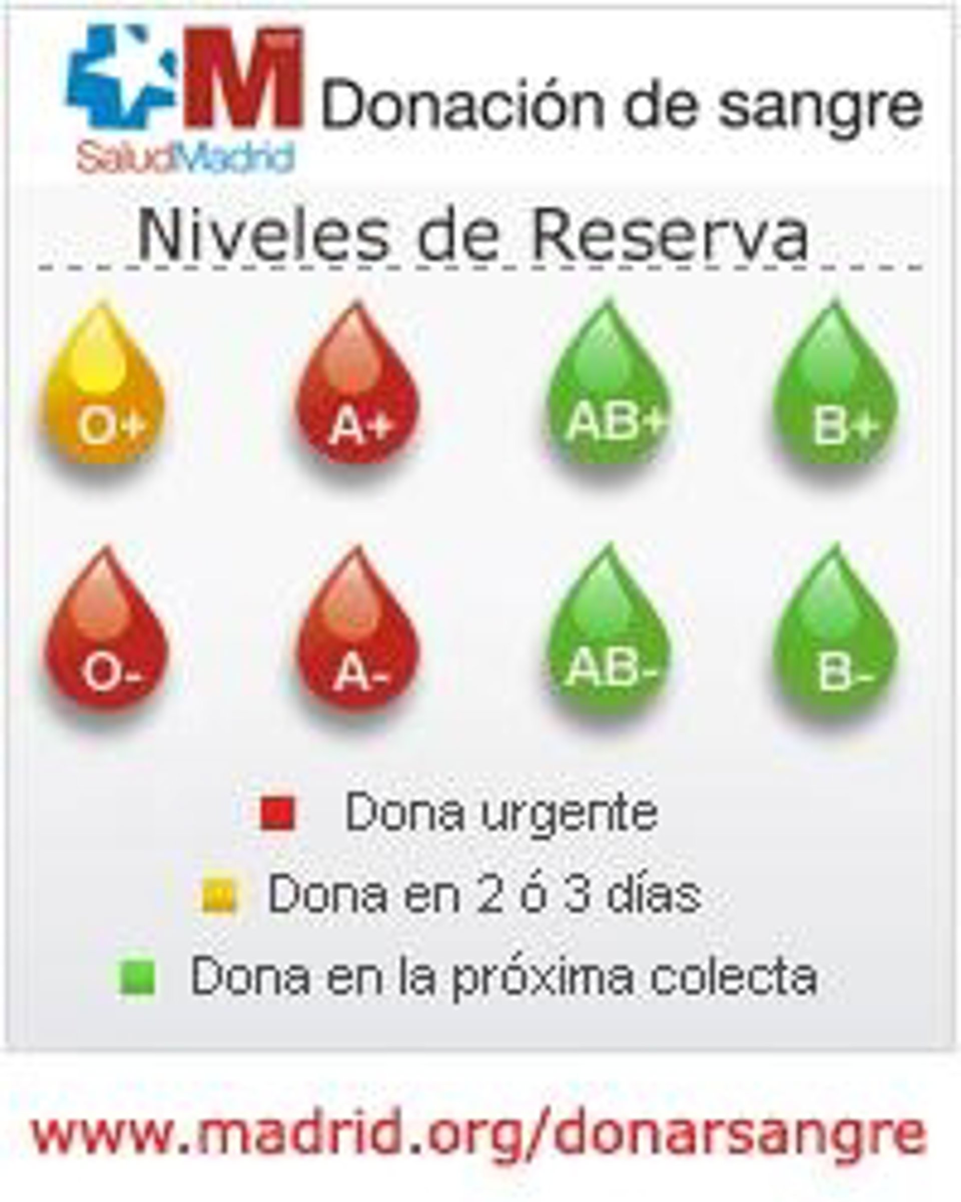 La Comunidad de Madrid necesita de manera urgente sangre de los grupos A+, A- y O-, por lo que insta a los madrileños que cuenten con estas tipologías a que se acerquen a los centros de donación de la región, según ha informado el Ejecutivo autonómico.