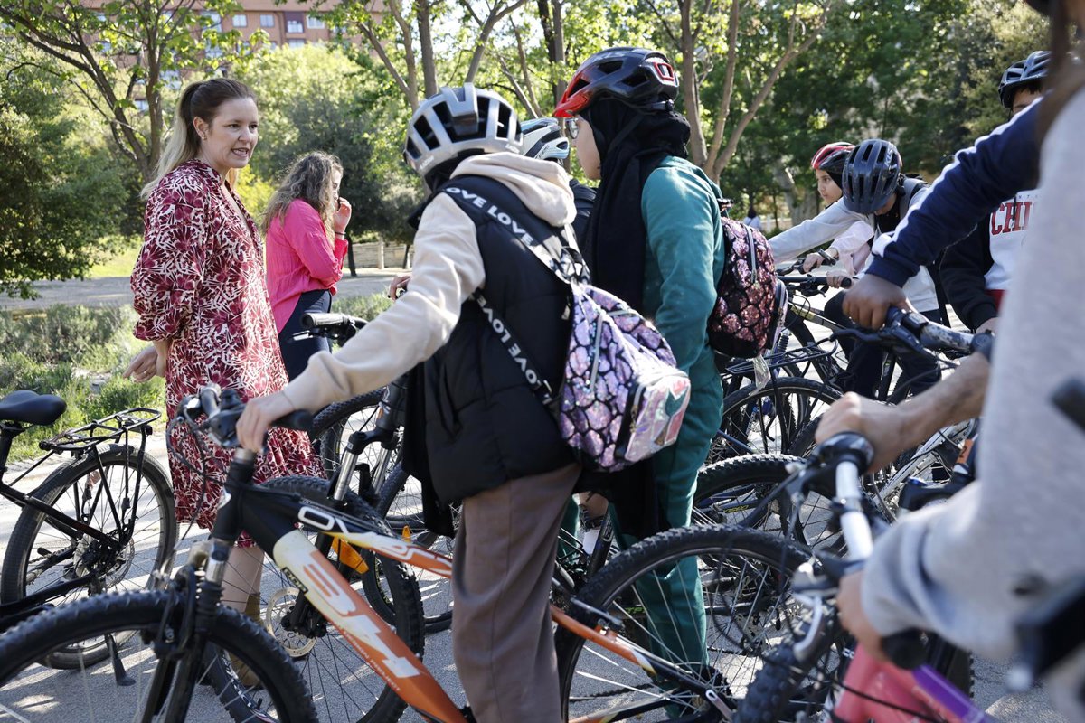 La consejera de Familia, Juventud y Asuntos Sociales, Ana Dávila, ha participado este viernes en la cuarta edición de las jornadas Cicloturismo y senderismo en Madrid Río y Casa de Campo, donde los alumnos hacen una ruta en bicicleta y a pie por estos espacios.