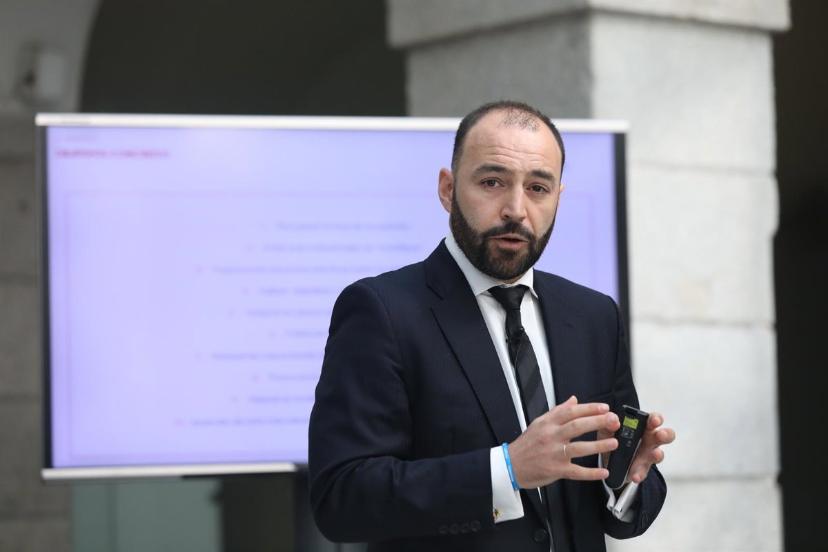El consejero de Economía, Empleo y Competitividad, Manuel Giménez, durante la presentación de las líneas maestras del Plan de Acción para la Reactivación del Empleo, un conjunto de medidas para contener la destrucción de empleo provocada por la crisis d - Marta Fernández Jara - Europa Press