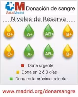La Comunidad de Madrid necesita en los próximos dos o tres días sangre de los grupos O-, O+, B- y B+ por lo que insta a los madrileños que cuenten con estas tipologías a que se acerquen a los centros de donación de la región, según ha informado el Ejecutivo autonómico.