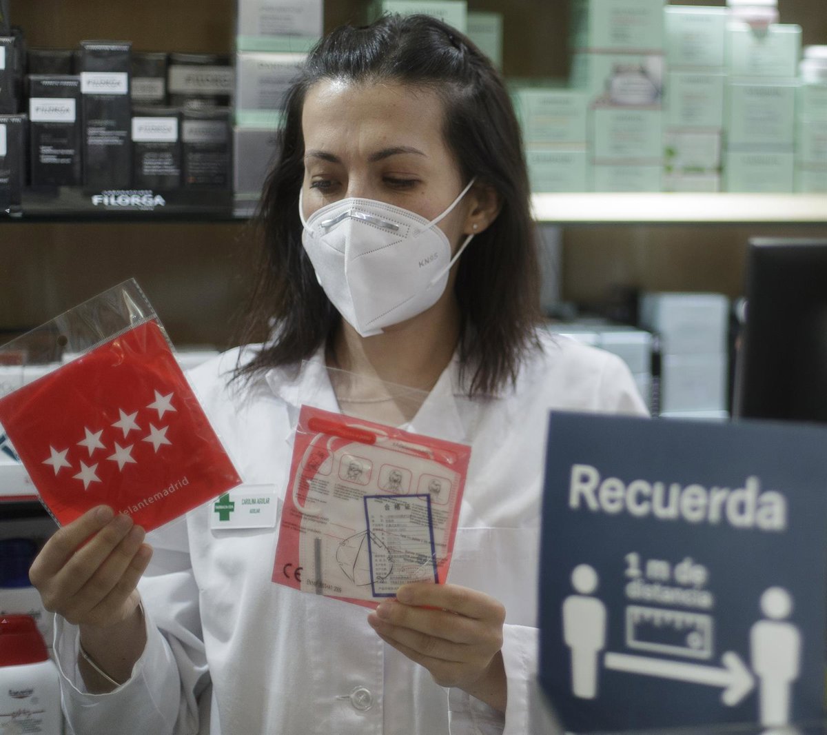 Una farmacéutica muestra una mascarilla en la Farmacia CEA de mascarillas FFP2 modelo KN95 - Eduardo Parra - Europa Press - Archivo