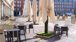 Las terrazas totalmente vacías con el árbol de Navidad de fondo en la plaza Mayor. - Oscar J. Barroso / AFP7 / Europa Press - Archivo