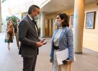 Archivo - La presidenta de la Comunidad de Madrid, Isabel Díaz Ayuso (d), y el consejero de Justicia, Interior y Víctimas, Enrique López (i), antes de una sesión plenaria celebrada en la Asamblea de Madrid, en Madrid, (España), a 11 de febrero de 2021. - Marta Fernández - Europa Press - Archivo