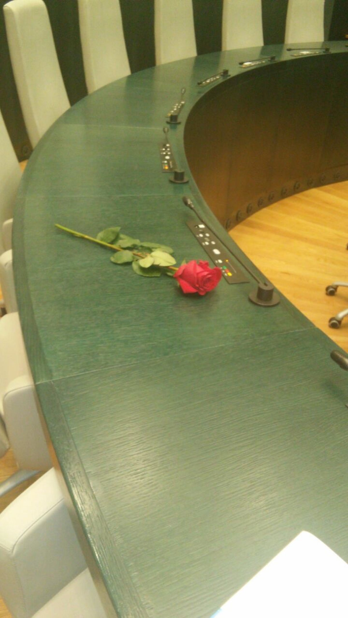 Los concejales del Ayuntamiento de Madrid se han despedido del socialista Pedro Zerolo dejando una rosa en el escaño que ocupaba en el Pleno del Palacio de Cibeles, al igual que sucediera ayer en el sillón que habría ocupado en la Asamblea de Vallecas.