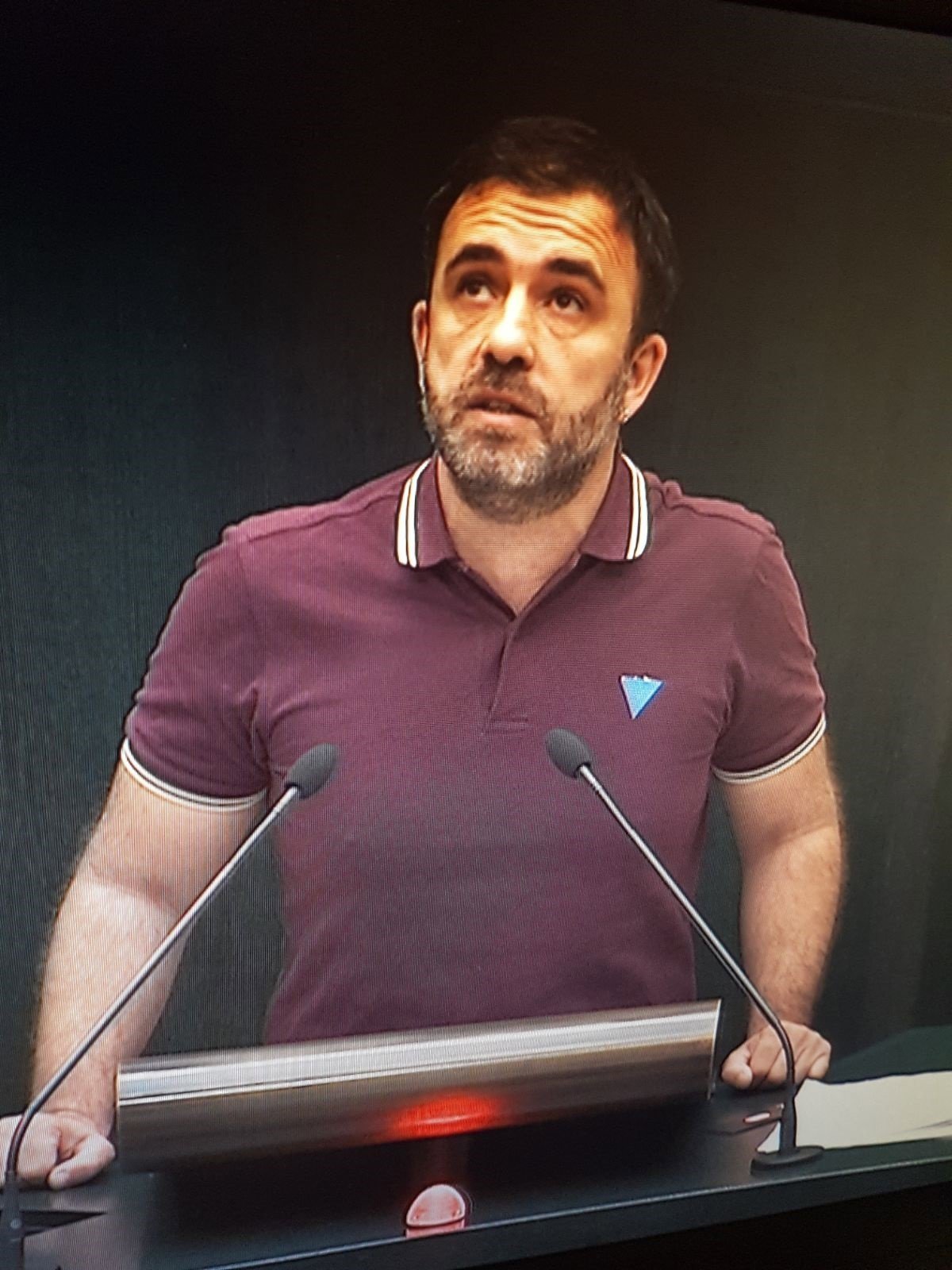 Concejales de todos los signos políticos del Ayuntamiento de Madrid han recordado y homenajeado a los republicanos españoles presos en los campos de concentración nazis con triángulos azules que se han pegado en la solapa.