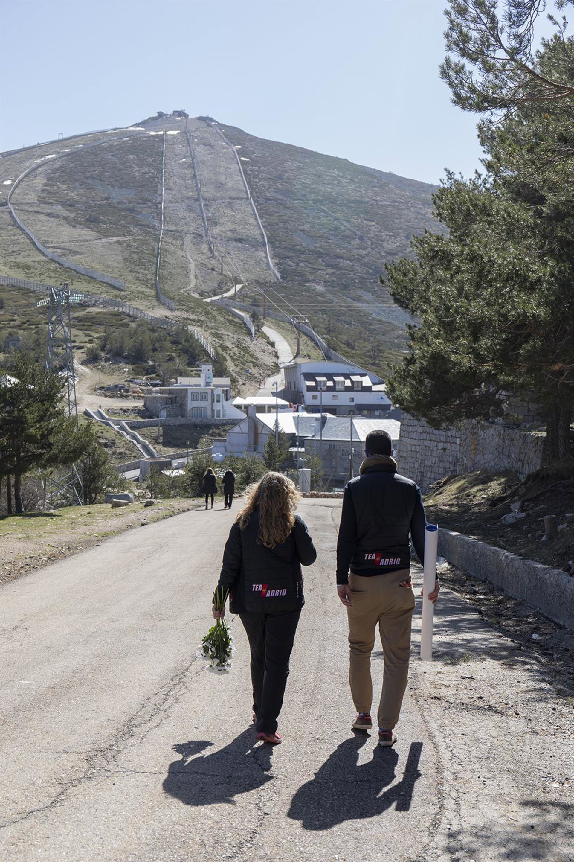 Archivo - Un hombre y una mujer se dirigen a una ofrenda floral como parte de una concentración en el Puerto de Navacerrada, a 4 de abril de 2021, en Madrid (España). - Rafael Bastante - Europa Press - Archivo