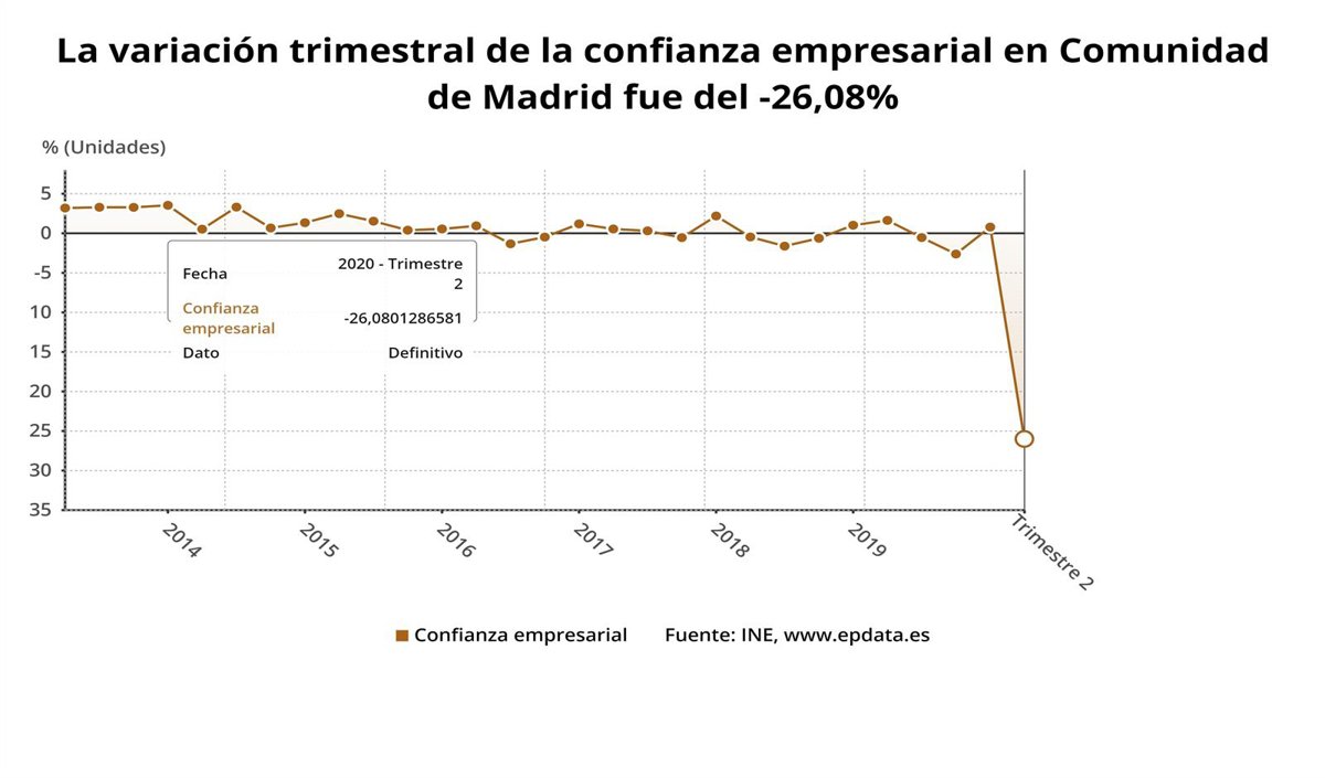 La confianza empresarial en la Comunidad de Madrid ha retrocedido un 26,1 por ciento en el segundo trimestre del año en relación al anterior, según el Indicador de Confianza Empresarial Armonizado (ICEA), cuya publicación corresponde al Instituto Nacional de Estadística (INE).