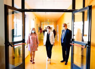 La presidenta de la Comunidad de Madrid, Isabel Díaz Ayuso (c), y el consejero de Educación y Juventud, Enrique Ossorio (d), visitan el Colegio Público bilingüe El Bercial en Getafe (Madrid), a 31 de agosto de 2020. - Comunidad de Madrid