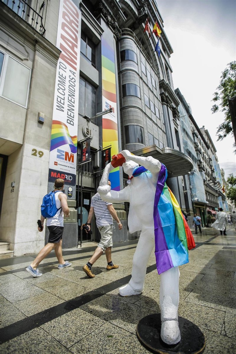 La Comunidad de Madrid está dando la bienvenida con una gran bandera del colectivo LGTB a los cientos de miles de turistas que durante estos días visitan la región con motivo de la Semana del Orgullo, uno de los principales eventos LGTB del mundo, ha informado la Comunidad en un comunicado.
