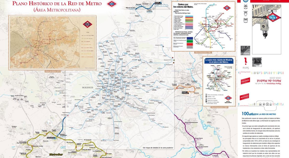 Además, incluye también otros datos como los cambios de nombres, la reasignación de tramos de una línea a otra y con distintos colores las fases del crecimiento urbano de la ciudad y cómo el Metro ha sido "el impulsor del desarrollo de la misma".