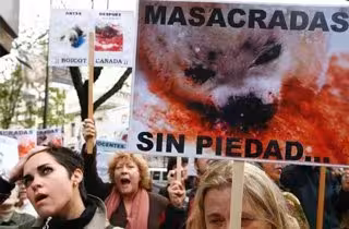 Diversas colectivos ecologistas y animalistas han convocado una concentración frente a la embajada de Canadá hoy, 8 de abril, en protesta por la "la matanza masiva y cruel de cientos de miles de crías de foca a manos de los 'pescadores' canadienses".