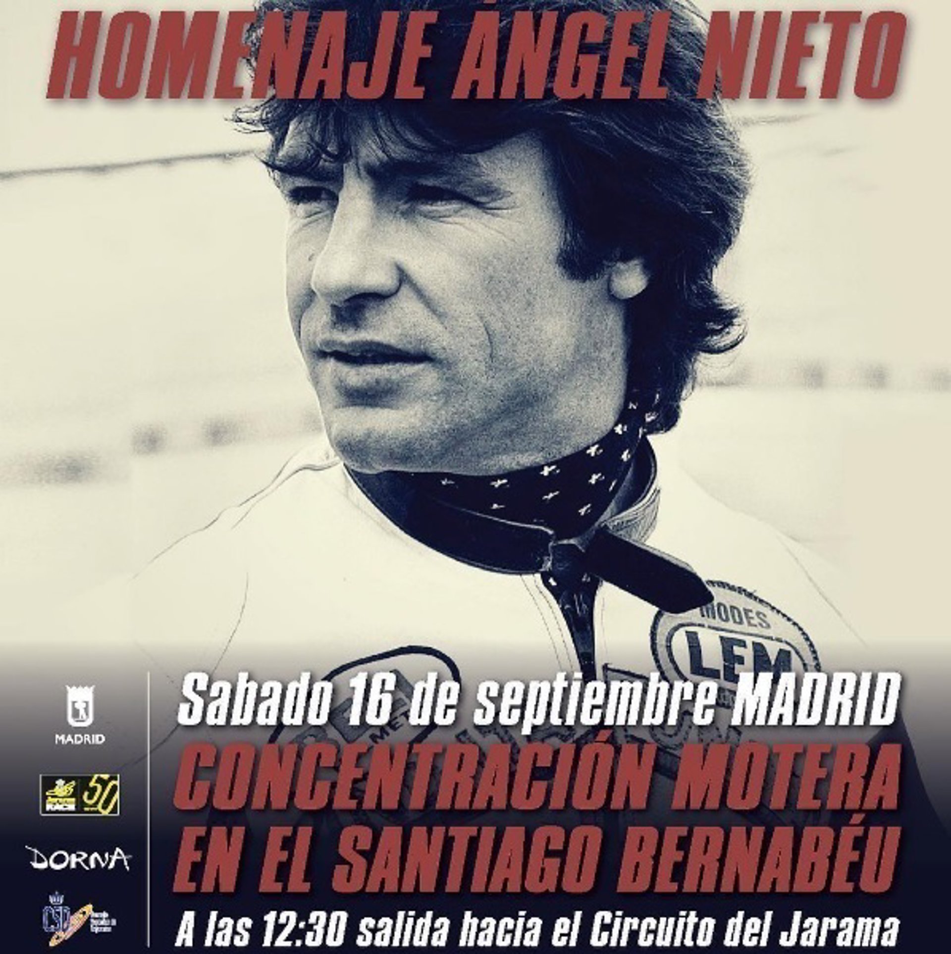 En una entrevista a Movistar Moto GP, recogida por Europa Press, uno de los hijos de Ángel Nieto, Pablo Nieto, ha asegurado que el acto comenzará con un minuto de silencio a las 12.30 horas en el Santiago Bernabéu, para después salir todos los asistentes en moto hacia el Circuito del Jarama; para lo que se cerrará el Paseo de la Castellana.