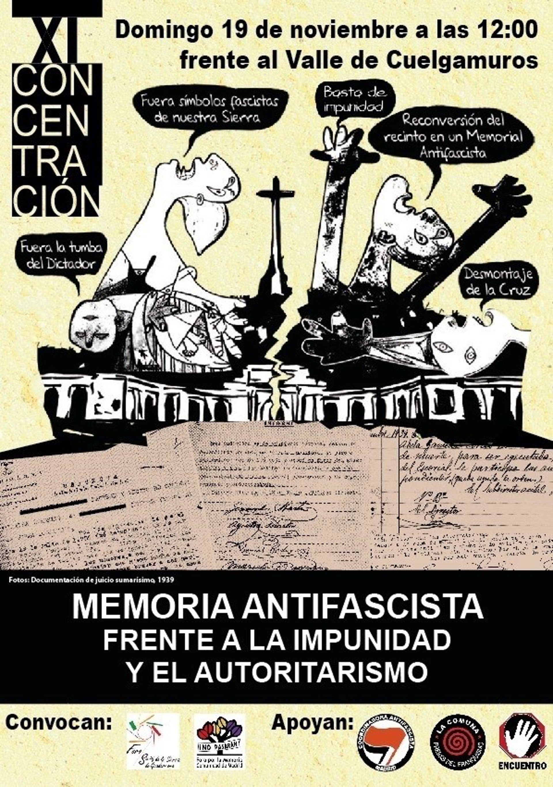 Asimismo, los activistas piden, "en lo posible", que se recuperen los restos de los republicanos enterrados a la fuerza en el monumento y que se entreguen a sus familias.