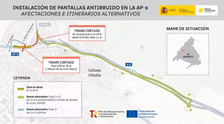 El departamento que dirige Óscar Puente está llevando a cabo obras entre los kilómetros 39,5 y 42 de la AP-6, a su paso por los municipios de Collado Villalba y Alpedrete, con un presupuesto de 1,039 millones de euros (IVA incluido) de los fondos europeos del Plan de Recuperación, Transformación y Resiliencia (PRTR).