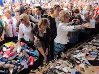 Entre aplausos y gritos de "presidenta", Cospedal y Aguirre han recorrido los puestos del mercadillo, haciendo la primera parada en uno de zapatos regentado por un hombre llamado Raúl, al que ambas le han insistido en que no tenía el género barato tras adquirir cada una un par de sandalias por 30 euros.