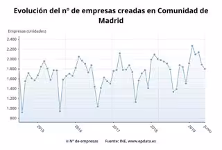 Evolución de las nuevas empresas creadas en la Comunidad de Madrid hasta junio de 2019. - EPDATA