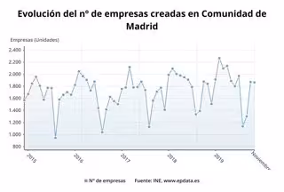 Evolución de la creación de empresas en la Comunidad de Madrid hasta noviembre de 2019. - EPDATA