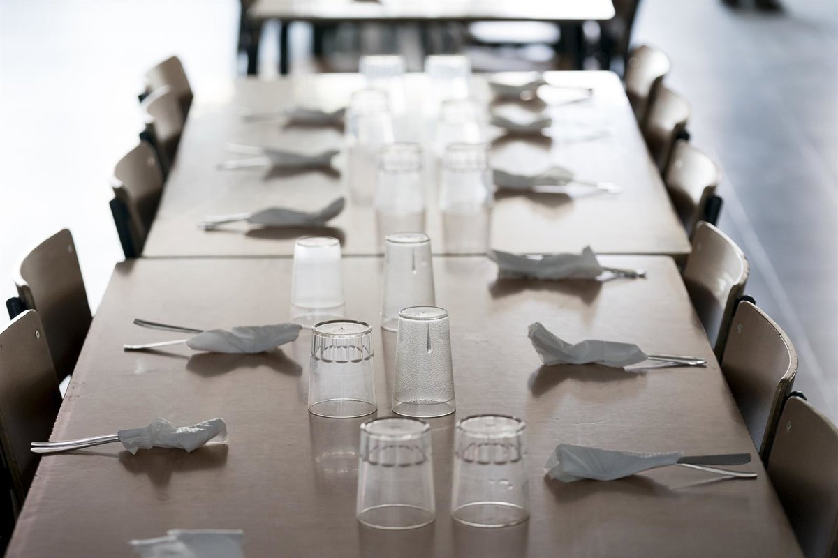 Archivo - Una mesa de comedor escolar durante en el Colegio público de Educación Infantil y Primaria San Juan Bautista con motivo de la inauguración del curso escolar 2023/2024, a 7 de septiembre de 2023, en Arganda del Rey, Madrid (España). - A. Pérez Meca - Europa Press - Archivo