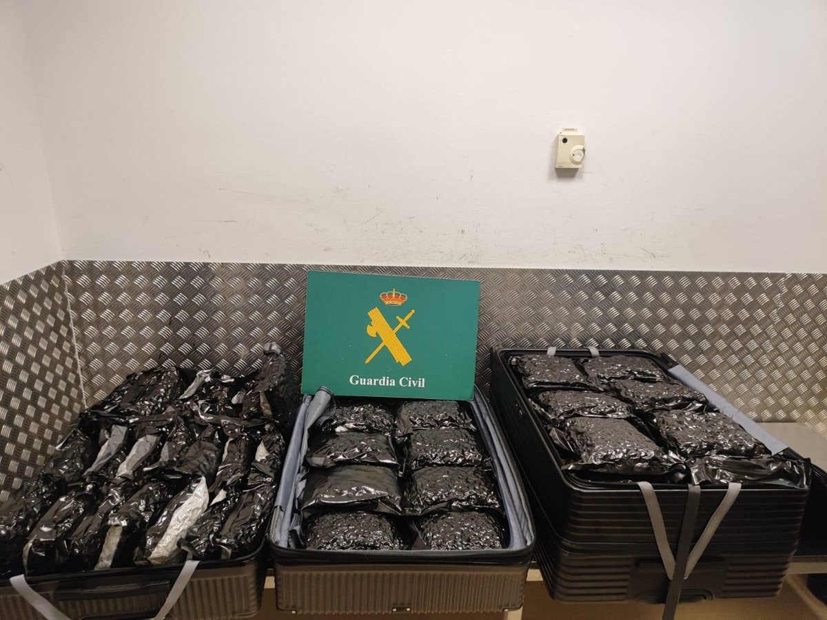 Una vez abiertos los paquetes en presencia de los ahora detenidos y realizados los test de drogas, se confirmó que la sustancia era marihuana. En total fueron 5 maletas aprehendidas, en cuyo interior había 158 kilogramos de marihuana. Los cuatro varones detenidos por un supuesto delito contra la salud pública fueron puestos a disposición judicial.