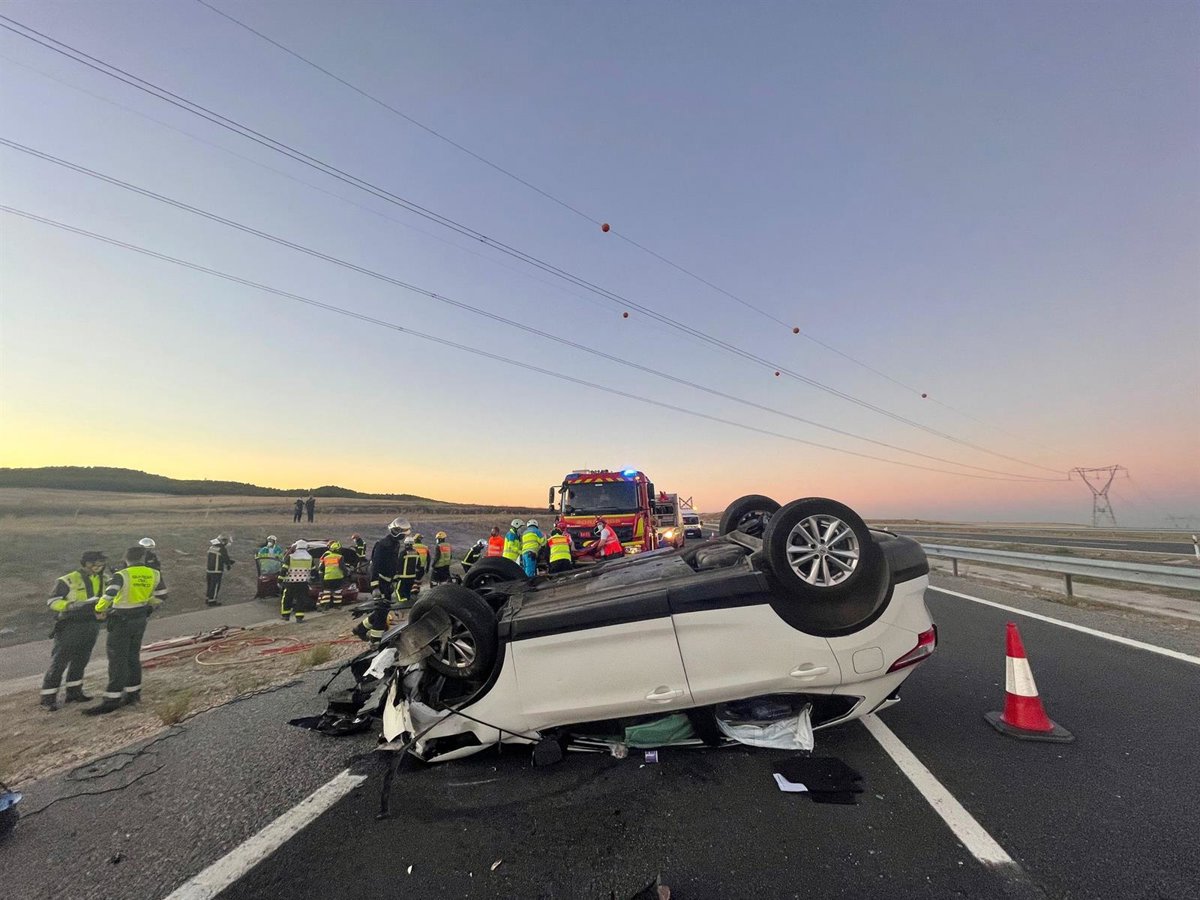 Uno de los coches ha quedado volcado en el carril derecho, en el que viajaba un hombre de 50 años con poli contusiones que ha sido trasladado con pronóstico leve al Hospital de Aranjuez.