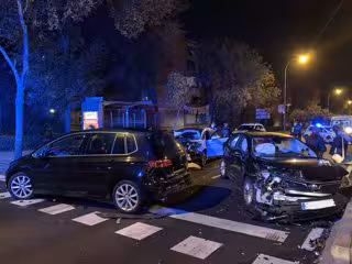 El siniestro tuvo lugar minutos después de medianoche, cuando un vehículo ha impactado a gran velocidad contra dos turismos que estaban parados en un semáforo. Hasta el lugar han acudido sanitarios de Samur-Protección Civil, quien han asistido en el lugar a dos personas, un hombre y una mujer, que tenían contusiones pero no han necesitado traslado hospitalario.