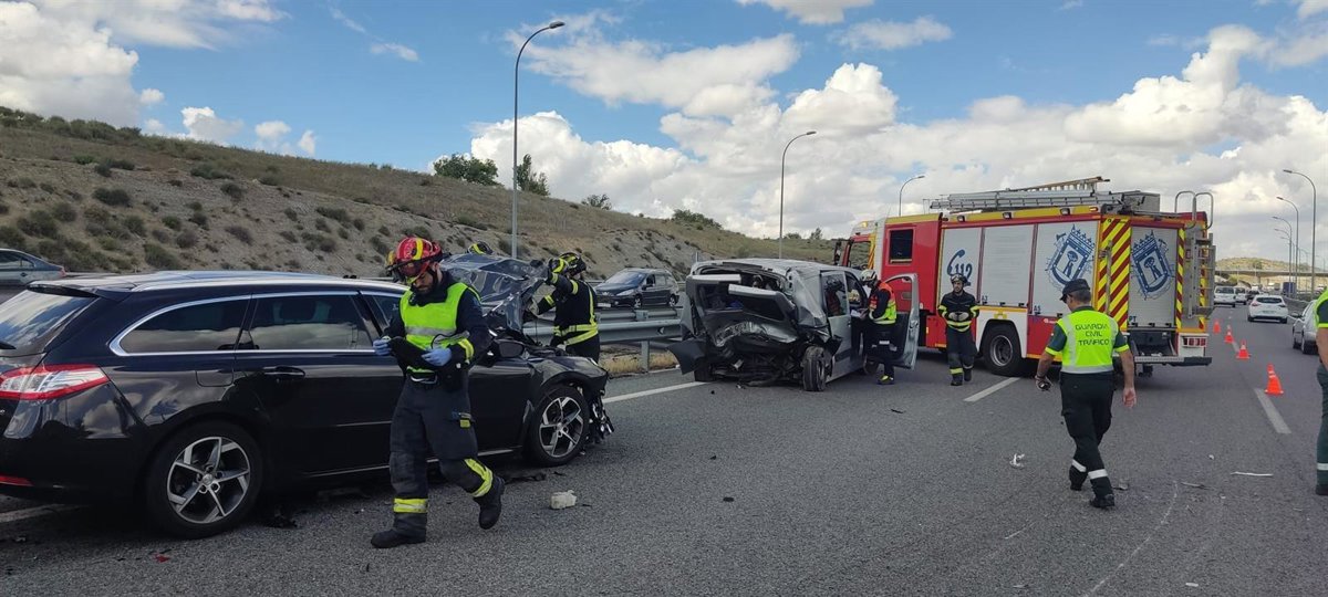 El accidente ha ocurrido sobre las 16:30 horas de este viernes en el kilómetro 37 exterior de la carretera de circunvalación. Los cuatro ocupantes de ambos vehículos han podido salir por su propio pie para ser luego atendidos por sanitarios del Samur-Proteccón Civil. Han sido trasladados en ambulancia a diferentes hospitales con pronóstico reservado.