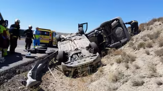 El aparatoso accidente se ha producido esta tarde en el kilómetro 65 de la A-6 sentido Madrid, cuando los dos turismos que circulaban en el mismo sentido han colisionado, volcando y quedando en la cuneta.