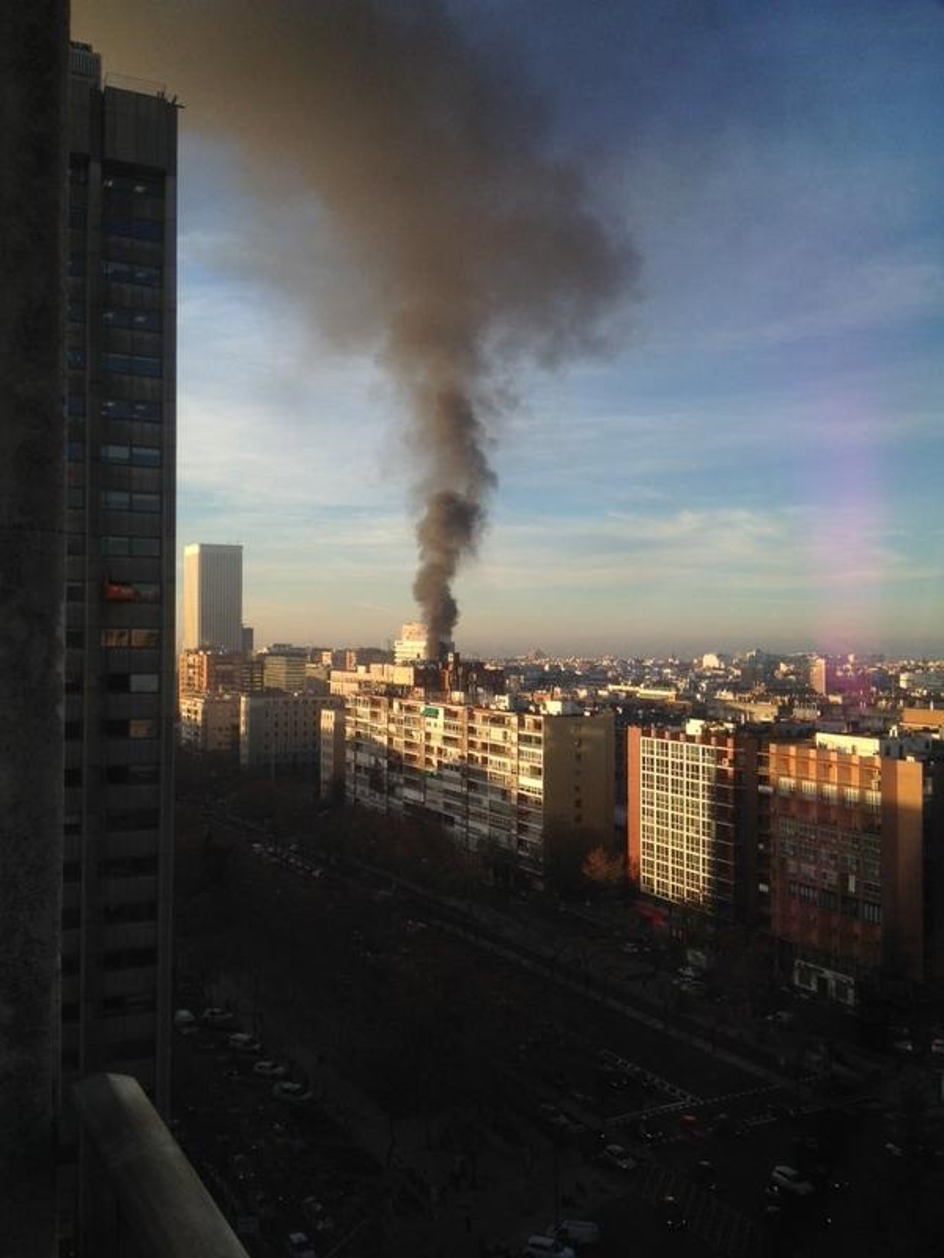 La zona en la que originó el incendio es una cubierta superior con instalaciones de aire acondicionado, donde se estaban efectuando unas obras. Al parecer, una chispa pudo incendiar las instalaciones de aire acondicionado y luego afectó los aislantes, las cubriciones y la grasa del lugar, lo que ha provocado un denso humo negro visible en todo el barrio.