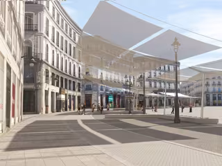 Así la Puerta del Sol contará por primera vez en su historia con toldos de sombra, que ocuparán el arco norte de la plaza. La instalación de la nueva estructura, que conjuga una importante complejidad técnica con los requerimientos de la Comisión Local de Patrimonio Histórico, encara estas semanas su recta final.
