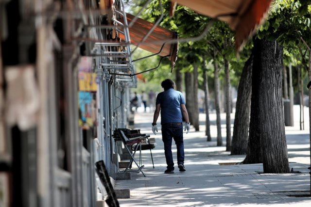 La emblemática Cuesta de Moyano de la capital ha comenzado poco a poco a recuperar su actividad esta semana con la mitad de sus 24 casetas abiertas, con medidas de seguridad contra el virus como gel hidroalcohólico y libros plastificados, y con una tímida afluencia de visitantes en busca de libros.