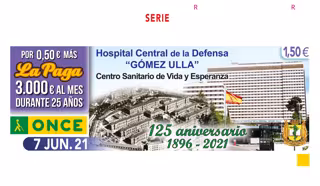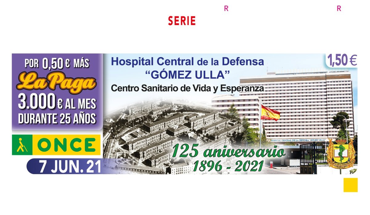 La ONCE dedica el cupón de este lunes al 125 aniversario del Hospital Central de la Defensa Gómez Ulla con una imagen del centro hospitalario que llegará a toda España en 5,5 millones de unidades.
