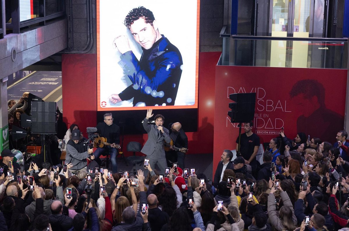 David Bisbal ha dado este martes la bienvenida a la Navidad a ritmo de villancicos y su 'Todo es posible en Navidad' con un concierto sorpresa en la estación de Sol y un viaje en el tren de la Navidad de Metro hasta plaza de España.