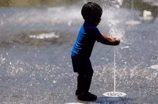 Un niño juega en una fuente en Madrid Río - Eduardo Parra - Europa Press