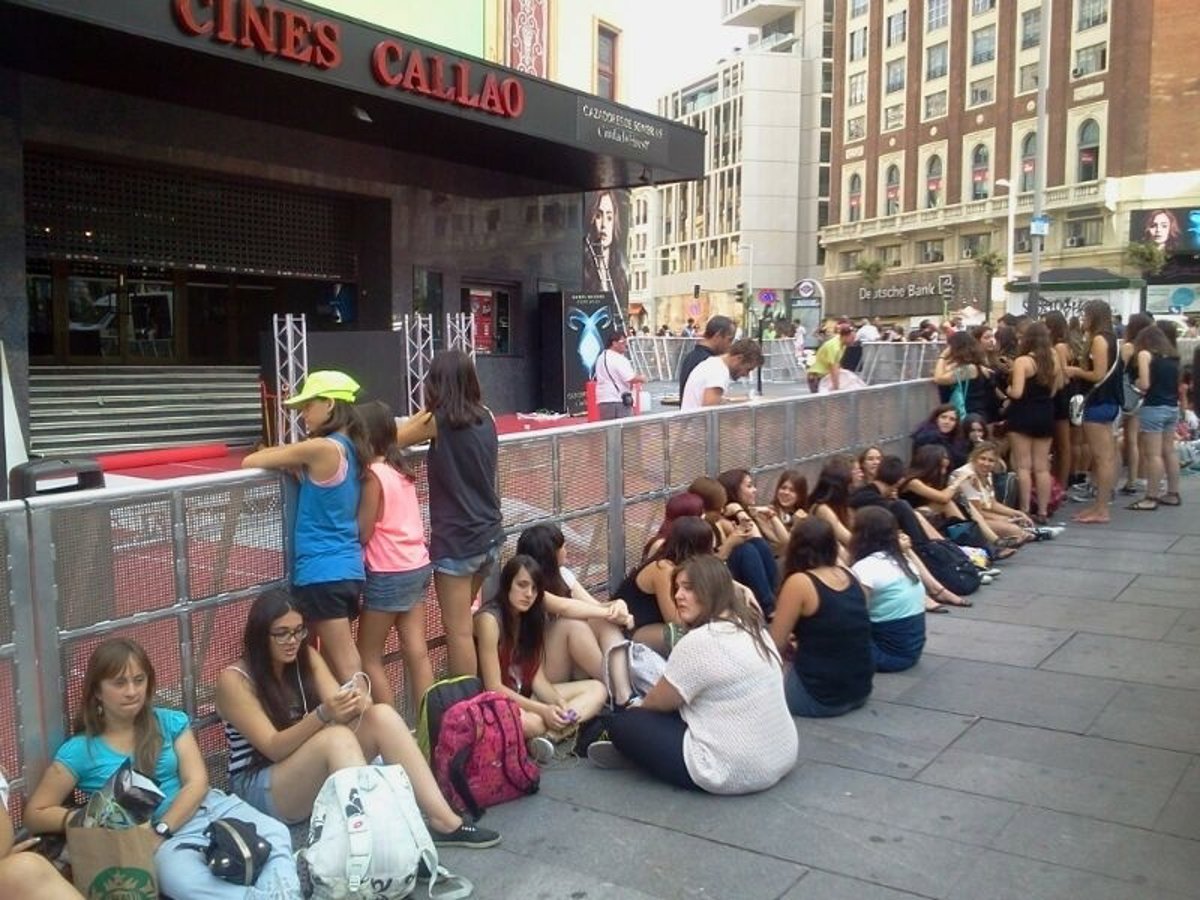 Cerca de 40 adolescentes aguardan ya para ver 'en primera fila' a sus ídolos durante el estreno, que tendrá el habitual 'photocall' y los pertinentes saludos a los fans y simpatizantes.