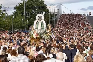 El pasado año unas 80.000 personas acudieron a la bajada de la Virgen, que se prolongará durante casi cinco horas, y que hará una parada a las 20.30 horas cuando la carroza de la patrona de Getafe llegue a la glorieta de la Base Aérea, tras atravesar el paseo John Lennon, para que se incorporen a la comitiva con destino a la catedral el obispo de la diócesis de Getafe, Joaquín María López de Andújar y el alcalde Juan Soler.