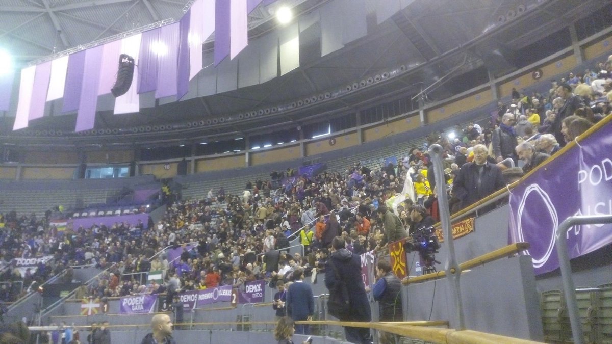 Ya en las gradas, que a las 11 horas todavía estaban a medio llenarse y ambientadas con música enérgica a medio volumen, muchos militantes han coreado las palabras "Sí se puede" y "Unidad" en un asamblea estatal precisamente caracterizada por la división. En las gradas también hay carteles de diferentes círculos y agrupaciones de Podemos.