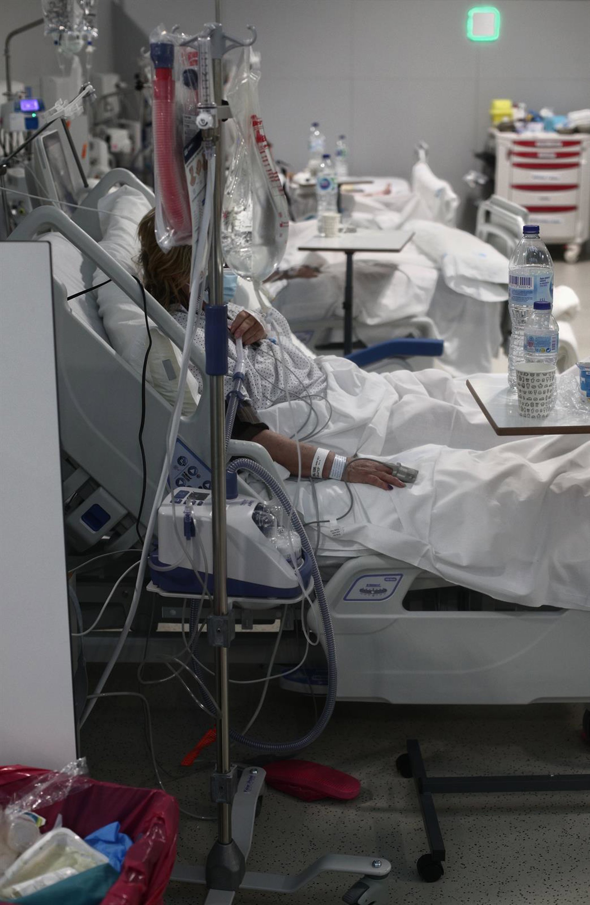 Un enfermo en una cama del Hospital de Emergencias Isabel Zendal, Madrid (España), a 20 de enero de 2021. El hospital, inaugurado el pasado 1 de diciembre, ha superado ya los 801 pacientes de COVID-19 y los ingresados en la Unidad de Cuidados Intensivos - Eduardo Parra - Europa Press