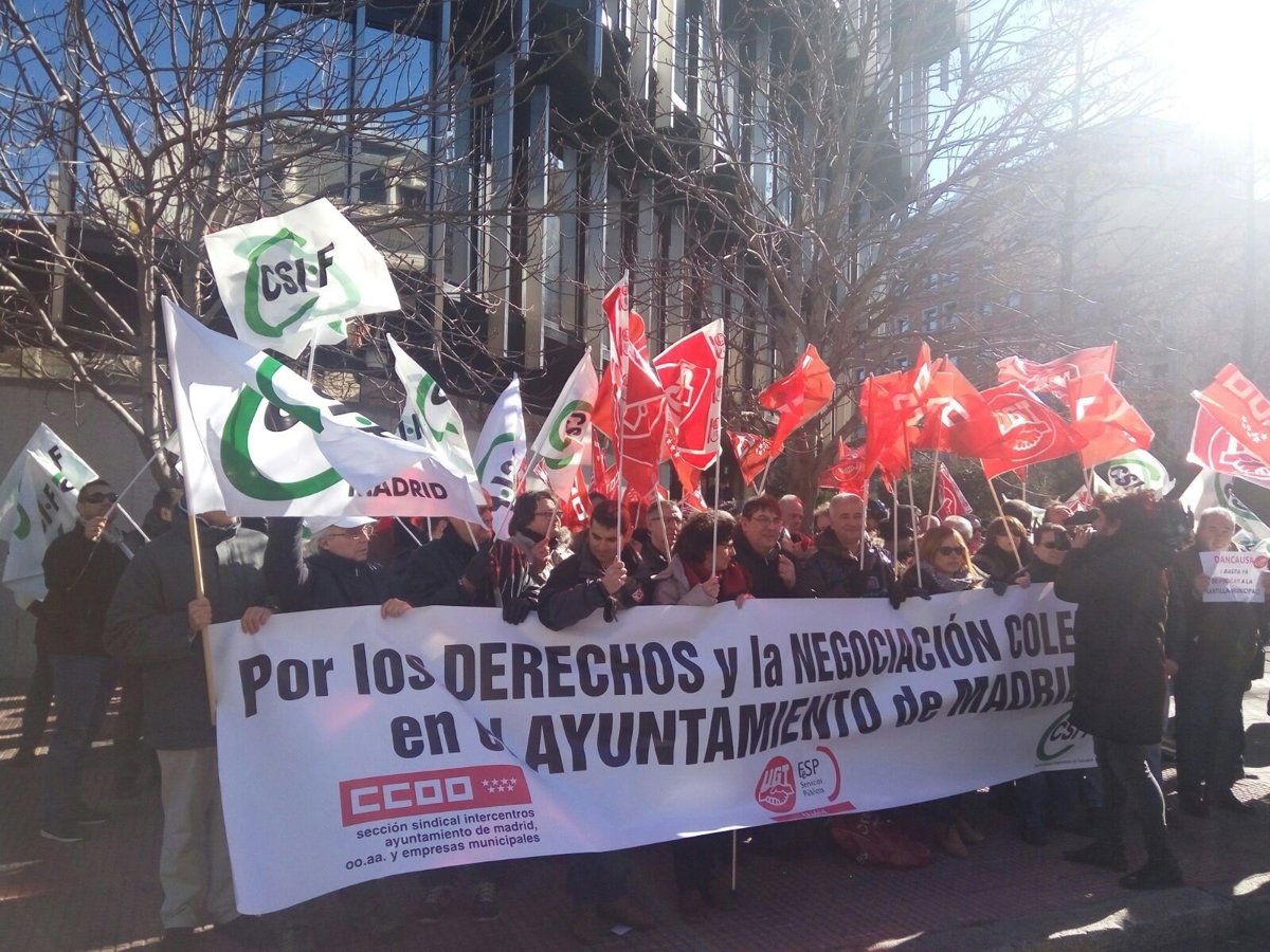 Delegados sindicales de CCOO, UGT y CSIF se concentrarán de nuevo mañana viernes de 12 a 13 horas frente a la sede de la Delegación del Gobierno en Madrid por la "agresión a la negociación colectiva" de los empleados del Ayuntamiento de la capital "perpetrada por la delegada, Concepción Dancausa".