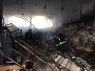 La llamada ha entrado a la central de emergencias a las 10.44 horas alertando del fuego, que ha calcinado el local comercial, dedicada al textil y al menaje del hogar. Además, se ha extendido por el patio interior del edificio a cinco viviendas, a través de sus terrazas, entrando incluso en las cocinas.