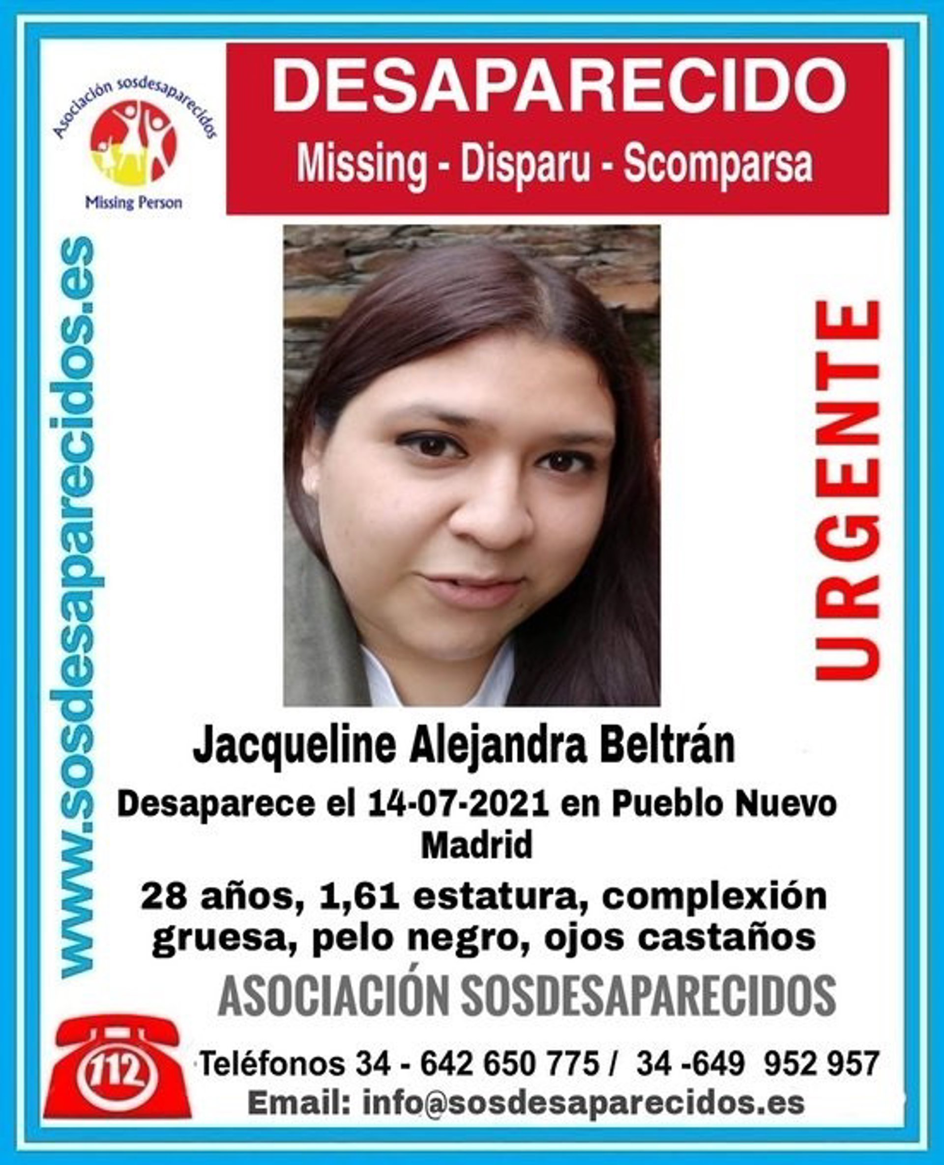 Una joven de 28 años que responde a la identidad de Jacqueline Alejandra Beltrán permanece en paradero desconocido desde el pasado día 14 de julio, cuando fue vista por última vez en el barrio de Pueblo Nuevo de la capital.
