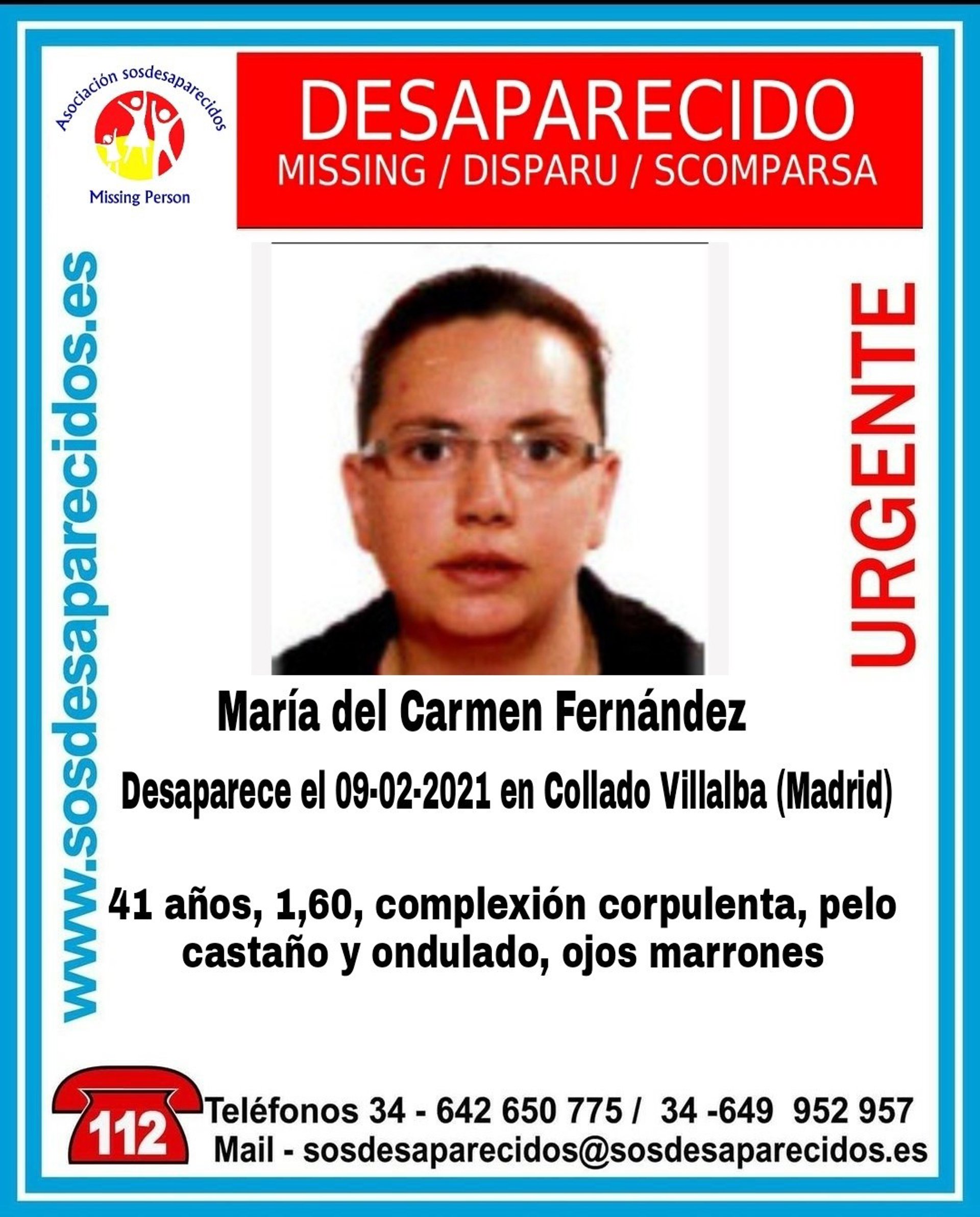 La asociación SOS Desaparecidos ha solicitado la colaboración ciudadana a través de sus redes sociales para localizar a una mujer de 41 años desaparecida en Collado Villalba el pasado 9 de febrero.