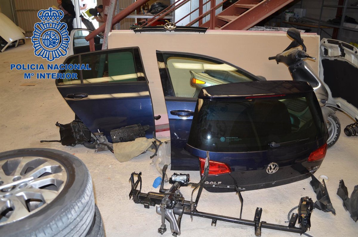 La Policía Nacional ha indicado que en el registro de la nave se encontraron gran cantidad de piezas de vehículos cortadas y despiezadas, de lo que se desprendía que esa nave era utilizada para modificar y "maquillar" números de bastidor, así como para cortar y despiezar los vehículos sustraídos con el fin de extraer las piezas de más valor.